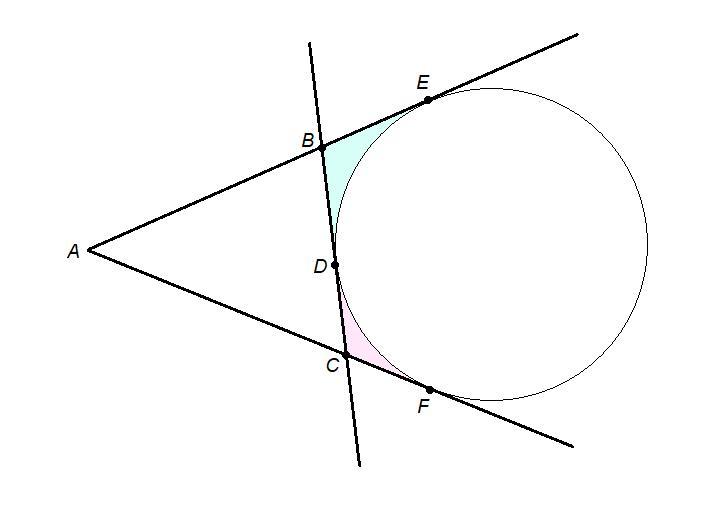 До кола проведені дотичні АЕ і АF. Дотична до кола в точці D перетинає прямі АЕ і АF у точках В і С відповідно. Чому дорівнює периметр трикутника АВС, якщо АЕ = 5 см? * СРОЧНО