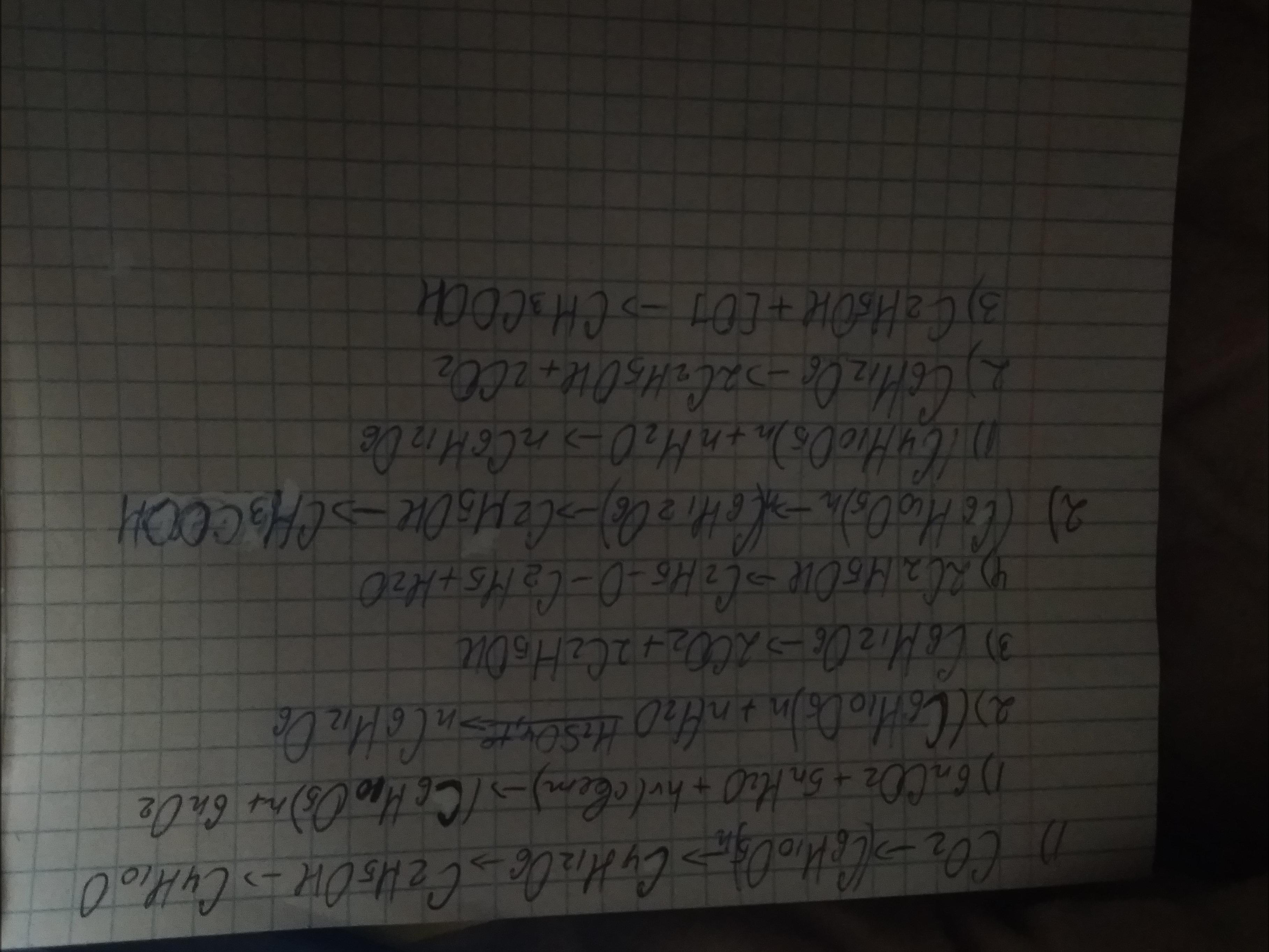 а) вуглекислий газ → крохмаль → глюкоза → етанол → діетиловий