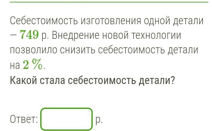 ОТВЕТ: себестоимость детали стала 637 рублей.