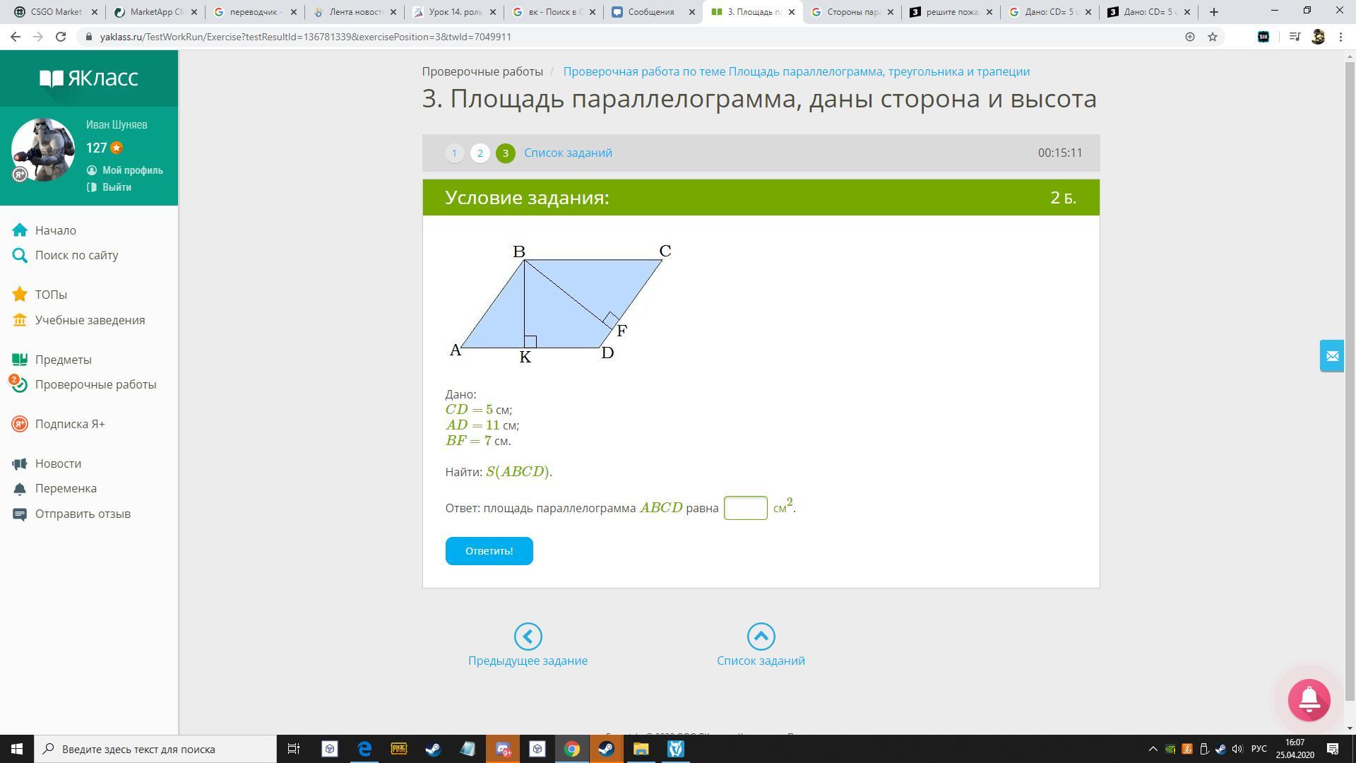 Площадь параллелограмма равна произведению высоты и стороны, к которой проведена высота.