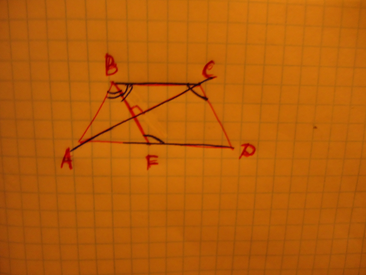 углы BAF = CDF (как углы при основании равнобедренной трапеции)