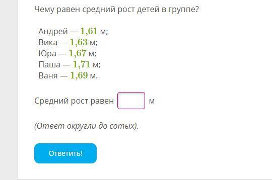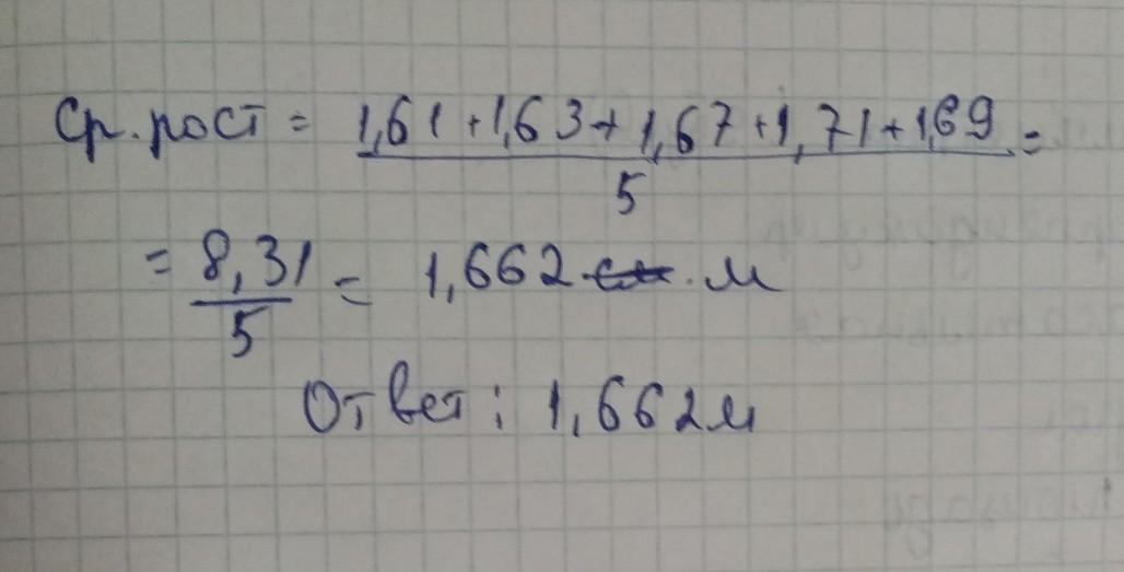 Средний рост - 1.652м, Вы уверены? Во первых, надо округлить, а во вторых - калькулятор показал мне 1.66 (уже округлил)