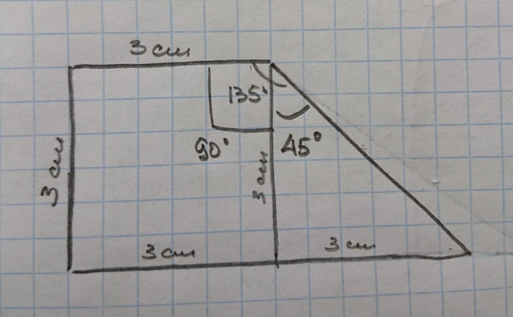 S = 3*3 + 3*3/2 = 9 + 4,5 = 13,5 см²