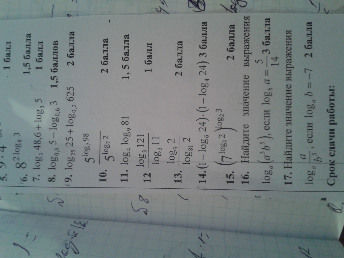 17) log a/b^5 по основанию a= log a по основанию a- log b^5 по основанию a= 1-(-7)^5= 1+16807= 16808