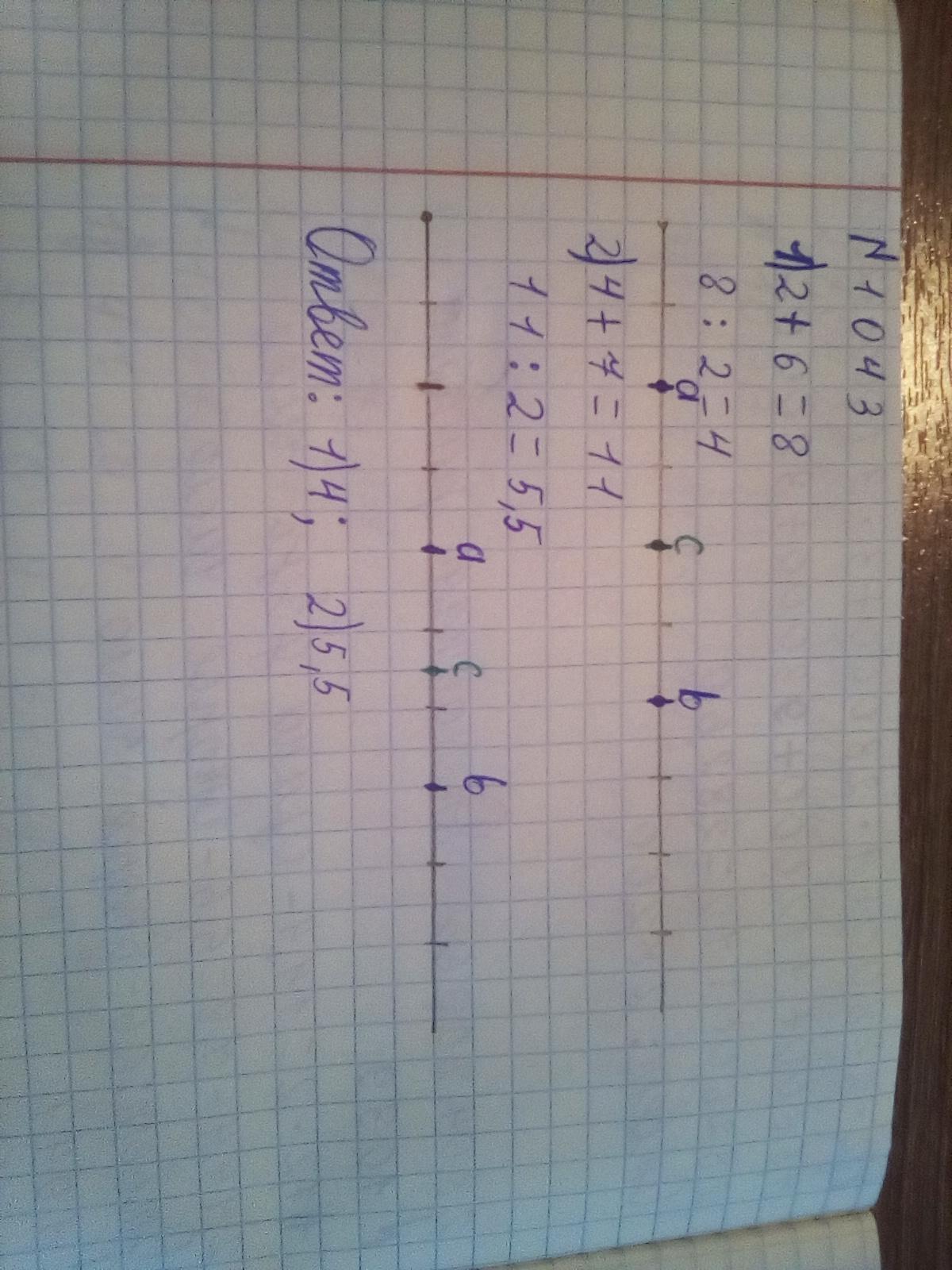 отметьте на координатном луче числа а и б и их среднее арифметическое если 1) а=2; б=4 2) а=4; б=7. Как расположена точка, соответствующая среднему арифметическому чисел а и б, относительно точек, соответствующих числам а и б?