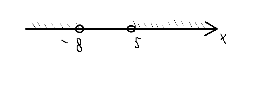 Ответ:(-бесконечности; -8)U(5;+бесконечности)