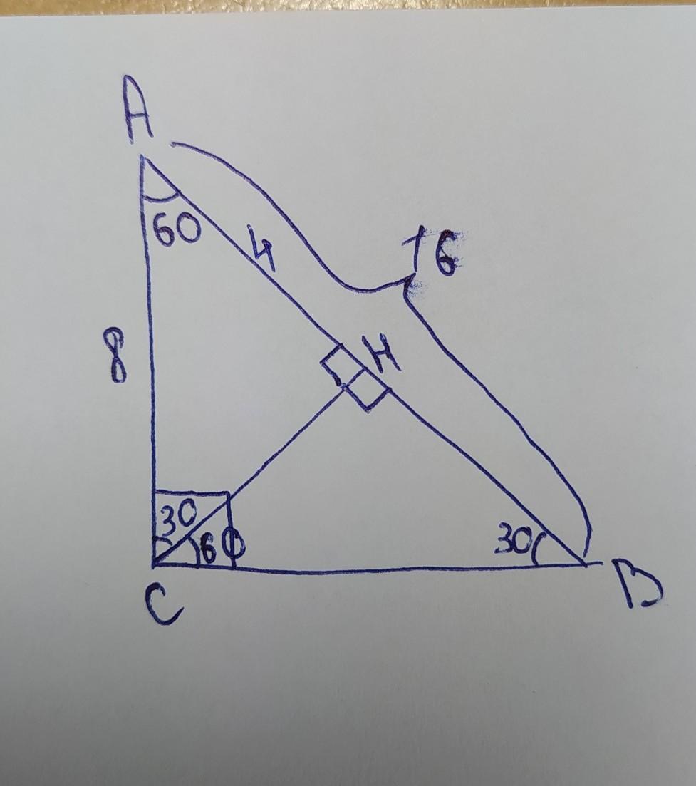 а прямоугольном треугольнике, катет лежащий напротив угла в 30° равен половине гипотенузы, из чего можно вычислить АН=16/2=8