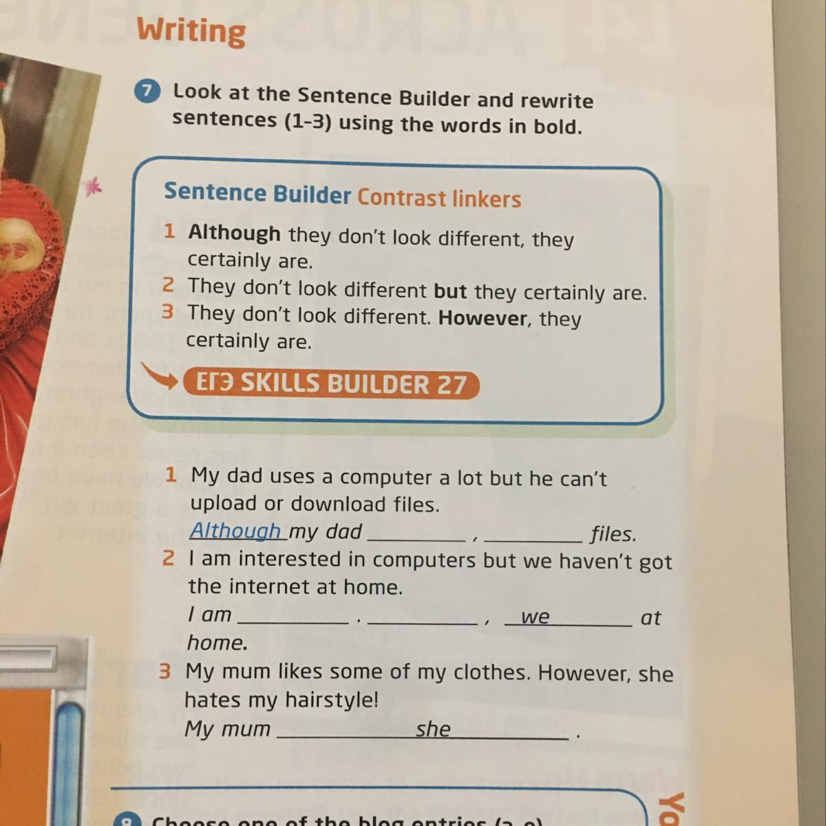 Look at the sentence builder and rewrite sentences (1-3) using the words in bold.