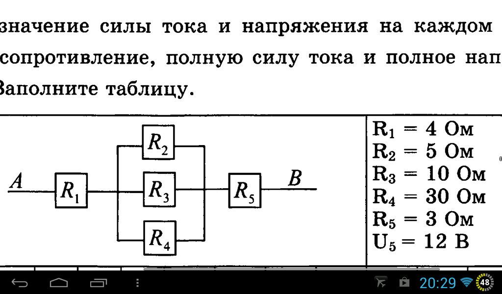 1/R234=1/R2+1/R3+1/R4=1/5Ом+1/10Ом+1/30Ом=10/30Ом R234=3Ом