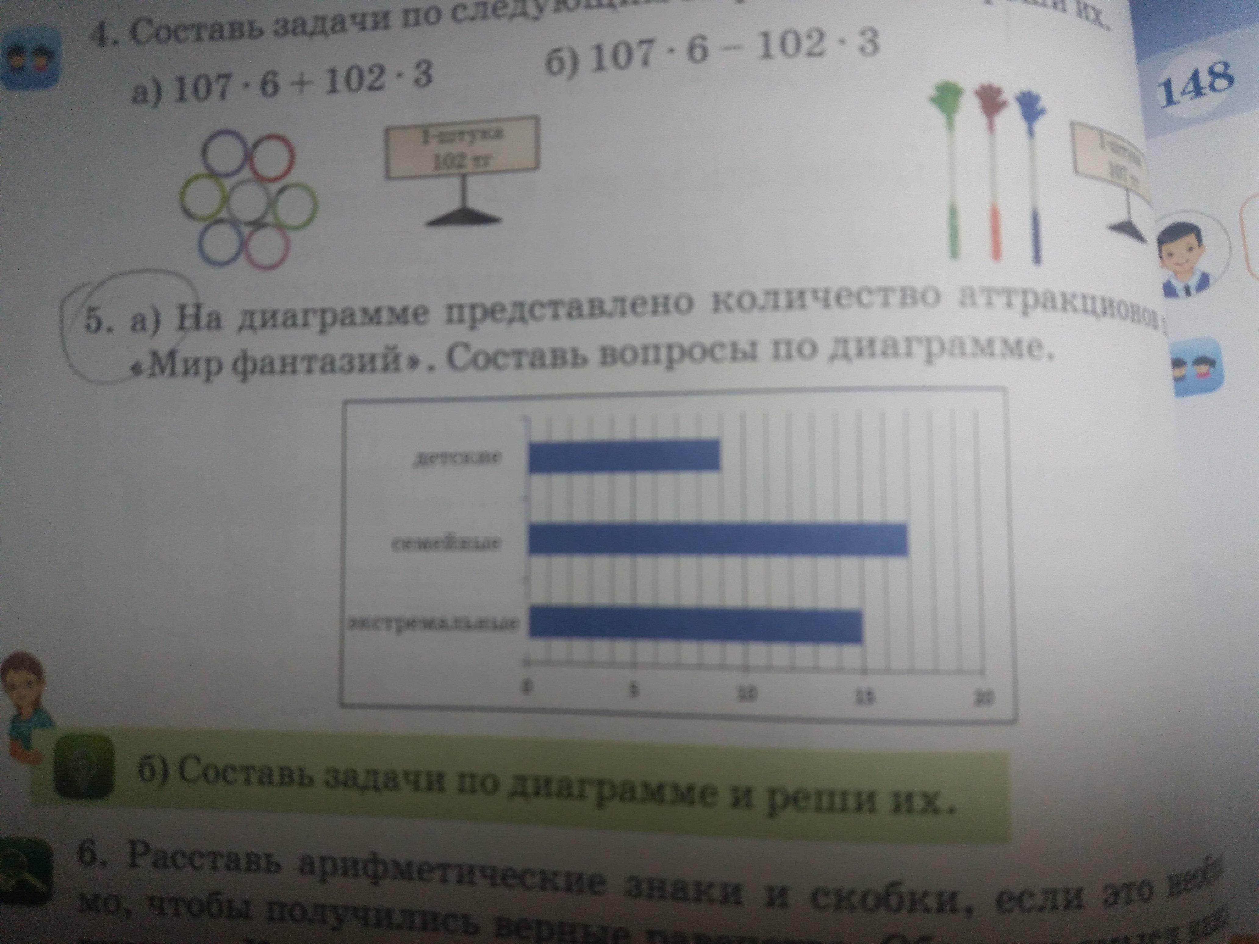 НА диаграмме представлено количество аттракционов парка "Мир фантазий " составь вопросы по диаграмме