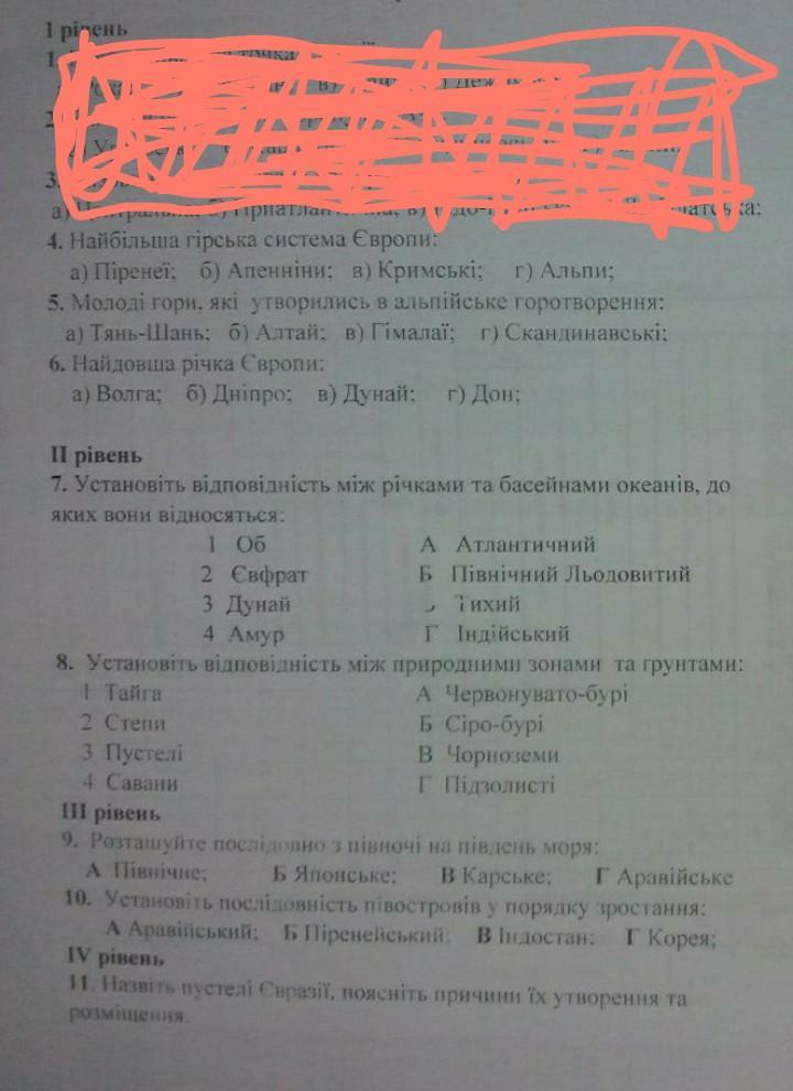 Допоможіть пліз срочно географія тема Євразія все на листку.