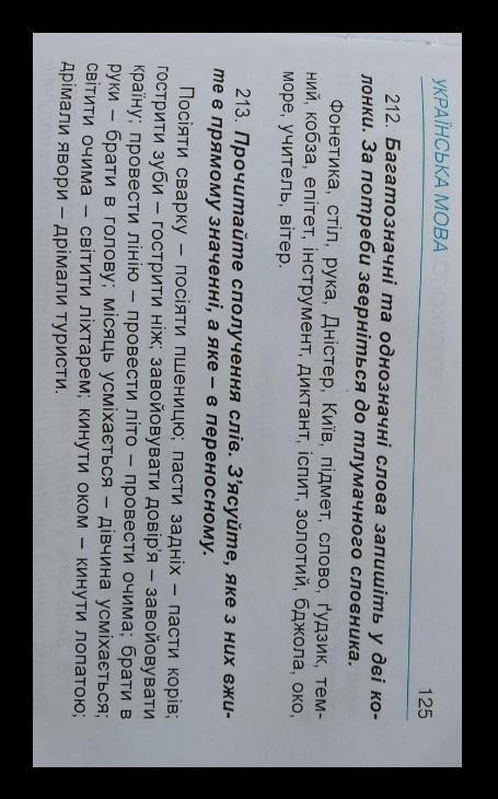 Посіяти сварку(в переносному)- посіяти пшеницю( в прямому), пасти задніх( в переносному)- пасти корів( в прямому), гострити зуби( в переносному)- гострити ніж( в прямому), завойовувати довір`я( в переносному)- завойовувати країну( в прямому), провести лінію( в прямому)- провести літо( в переносному)- провести очима(в прямому), брати в руки(в прямому) - брати в голову(в переносному), місяць усміхається( в переносному)- дівчина усміхається( в прямому), світит очима( в переносному) світити ліхтарем( в прямому), кинути оком(в переносному)- кинути лопатою( в прямому), дрімали явори( в переносному)- дрімали туристи( в прямому).