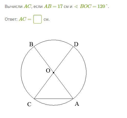 Вычисли AC, если AB = 17 см и ∢ BOC = 120°.