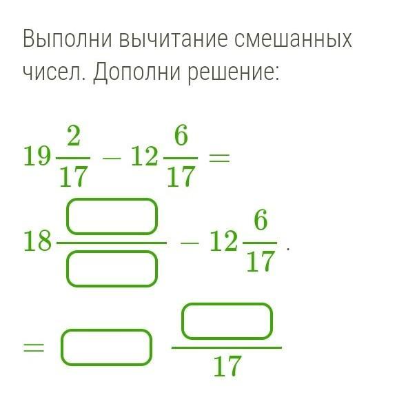 Ответ: 18 19/17 - 12 6/17 = 6 13/17