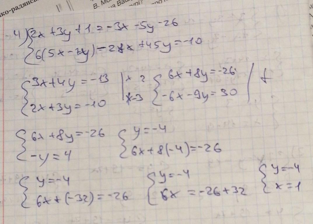 3х=15; х=5; у=(-32+4*5)/3=-4