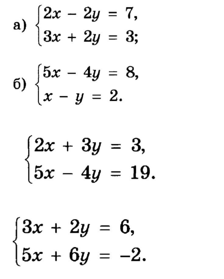 решить системы из прикрепленного файла методом сложения