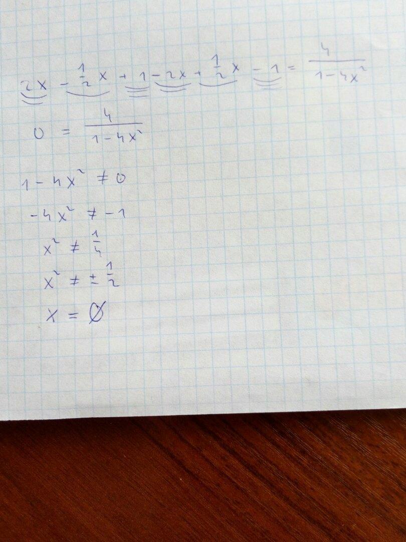 1) 2x-2x+1/2x-1/2x+1-1=4-4x^2