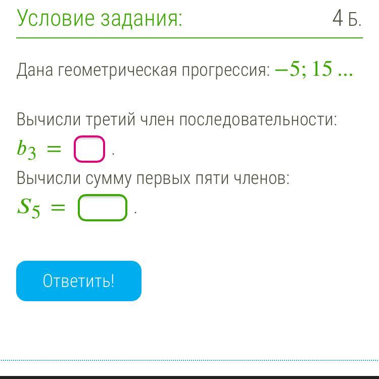 Sn=(b1(1-q^n))/(1-q)=(-5(1-(-3)^5))/(-3-1)=-140/-4