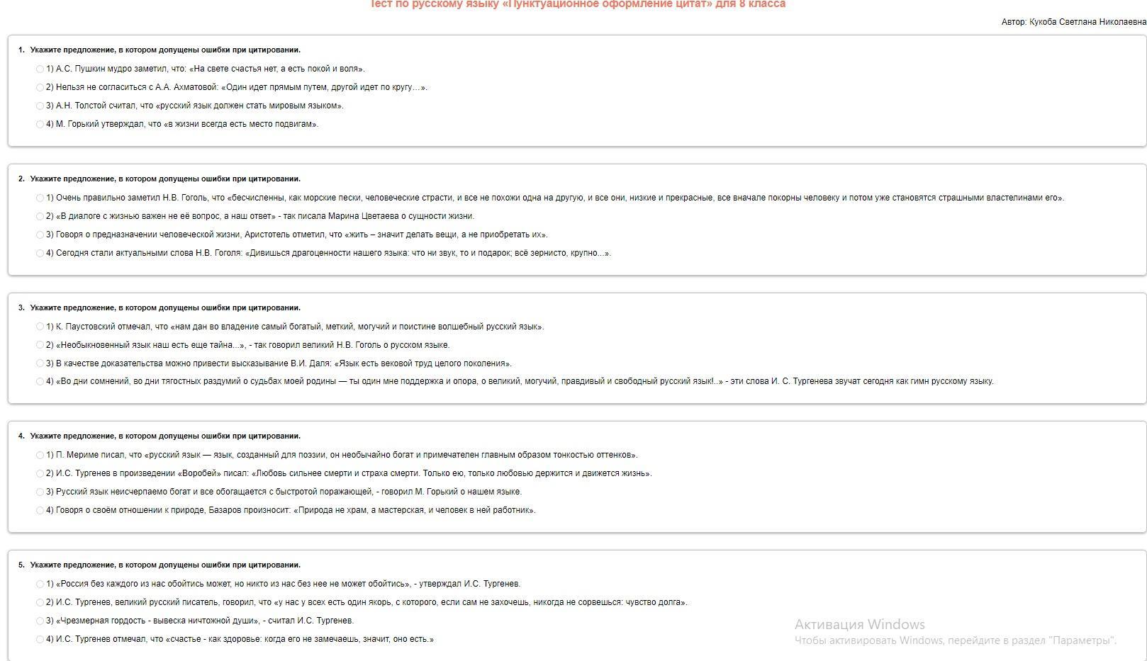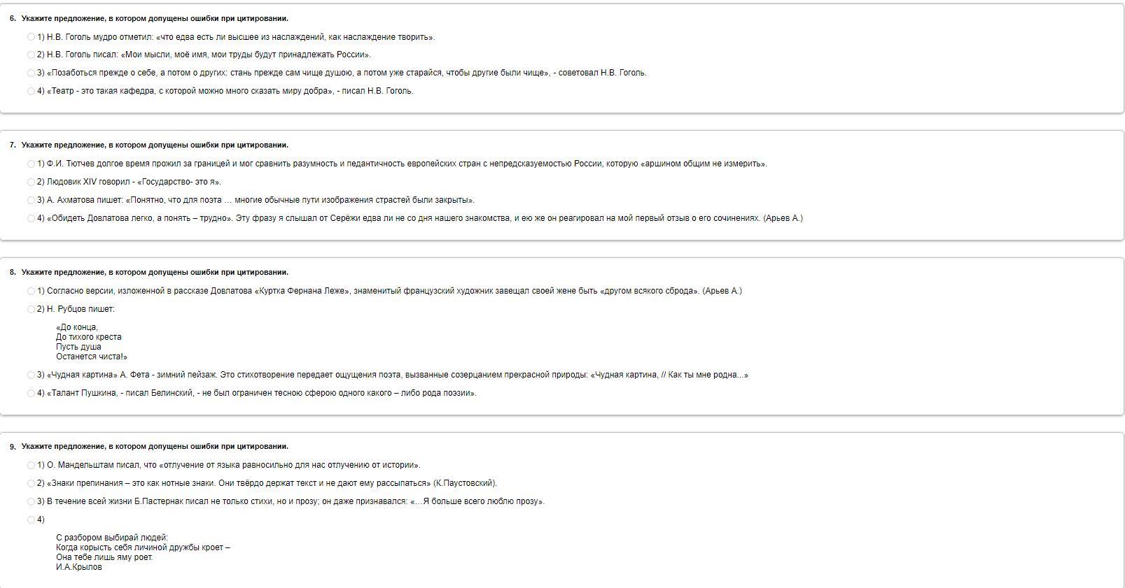 Укажите предложение, в котором допущены ошибки при цитировании.