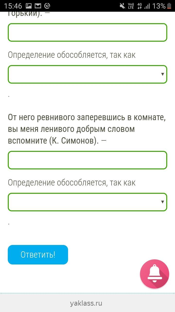 2) От него, ревнивого, заперевшись в комнате, вы меня, ленивого, добрым словом вспомните