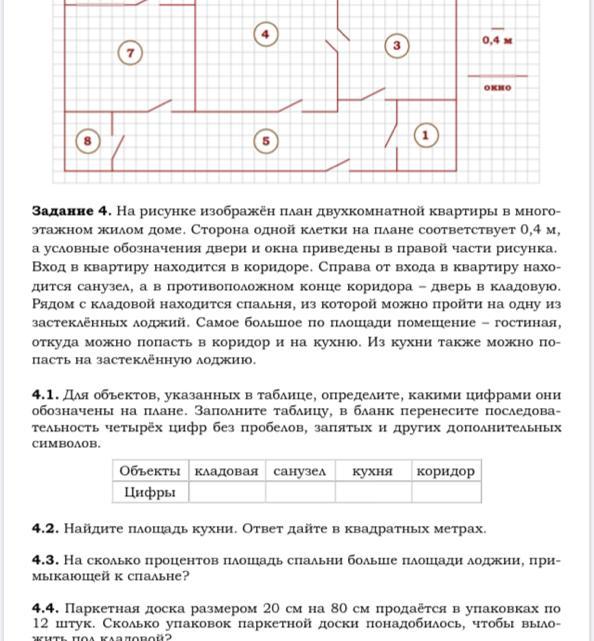 Паркетная доска размером 20 см на 80 см продается в упаковках по 12 штук. Сколько упаковок паркетной доски понадобилось, чтобы выложить пол в кладовой(8)?