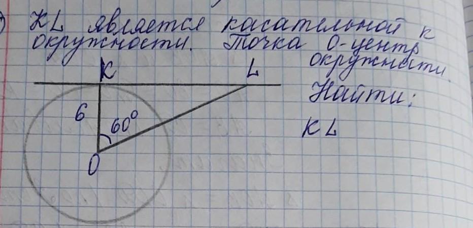 Если угол К =90 градусам, то угол L = 30 градусов, тогдаа ОL = 12