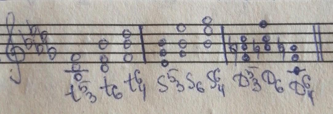 Главные трезвучия лада : тоническое (t) на 1 ступени, субдоминантовое (s) на 4 ступени, доминантовое (D) на 5 ступени