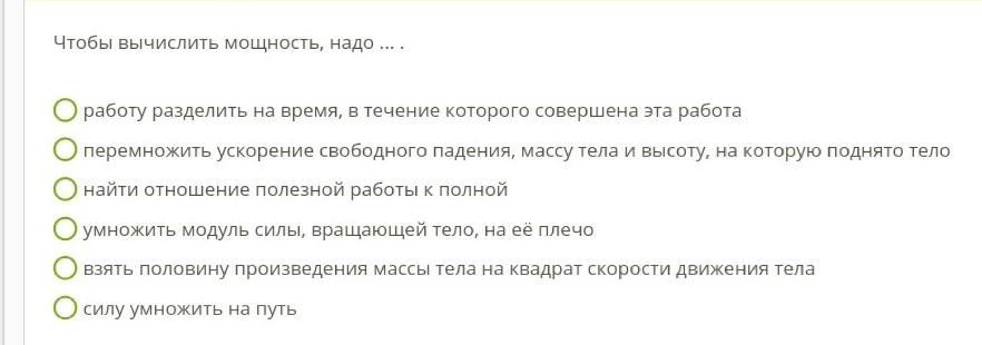 чтобы вычислить мощность надо работу разделить на время, в течение которого была совершена работа
