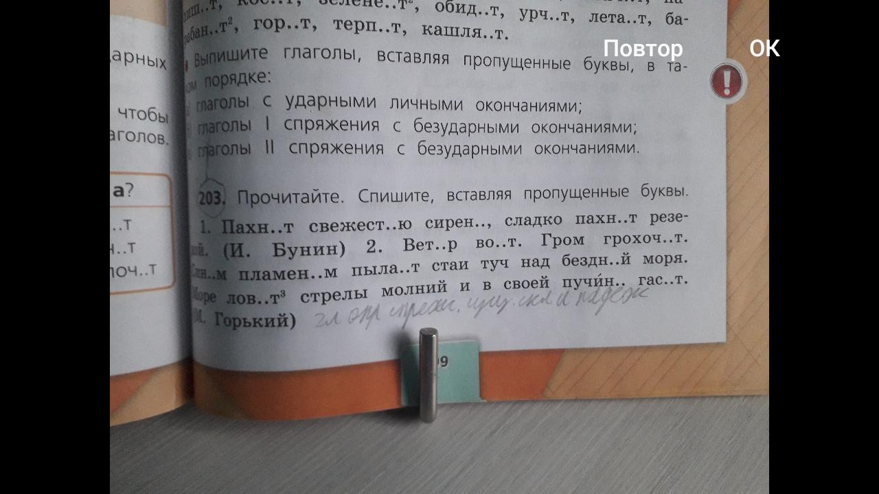 Прочетайте. Спишите вставляя пропущенные буквы. Определите у глаголов спрежения у сущиствительных склонения и падеж