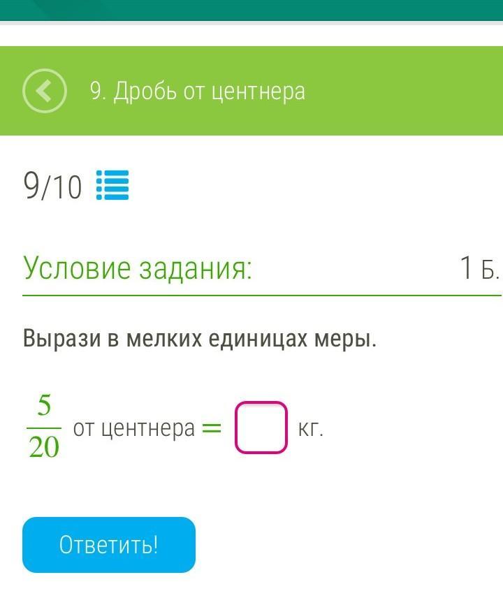 5/20 от центнера =0,25кг