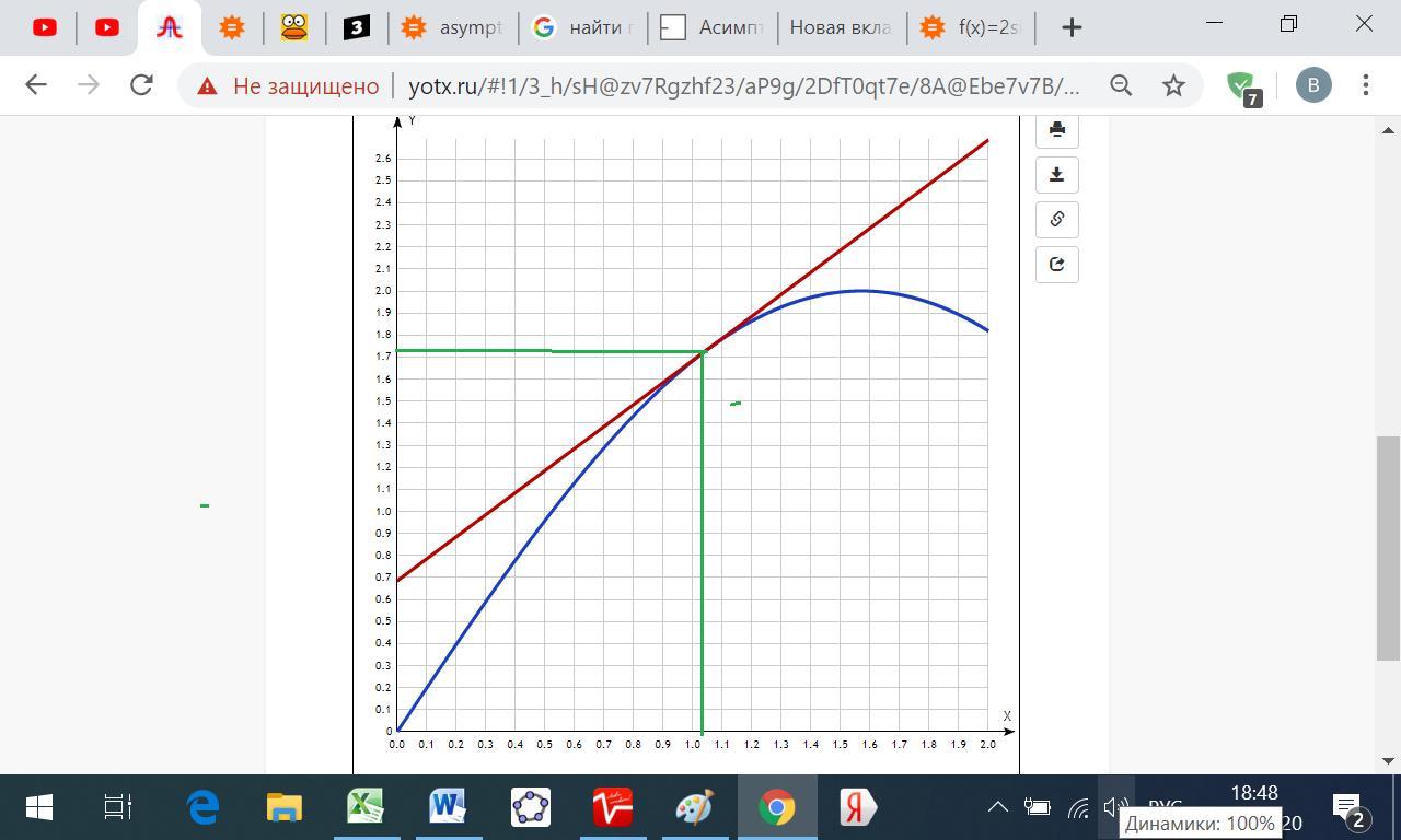 Найти абциссы точек,в которых угловой коэфициент касательной к графику f(x) равен k,если f(x)=2sinx,k=1