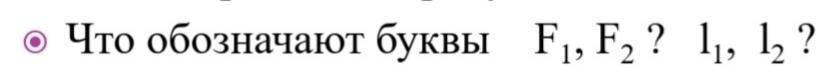 Возможно весы ,F1 F2 это сила притяжения ,а l1 l2 это длина плеча( расстояние от центра
