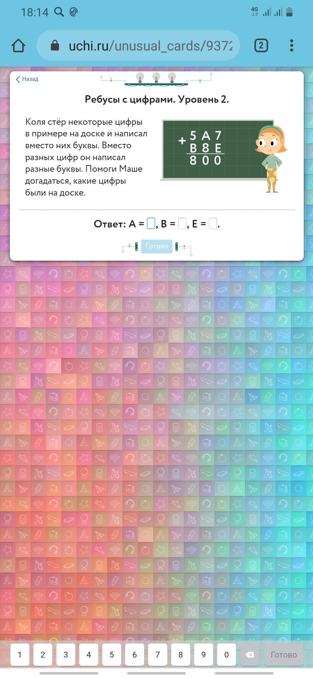А = 1; В = 2; Е = 3;