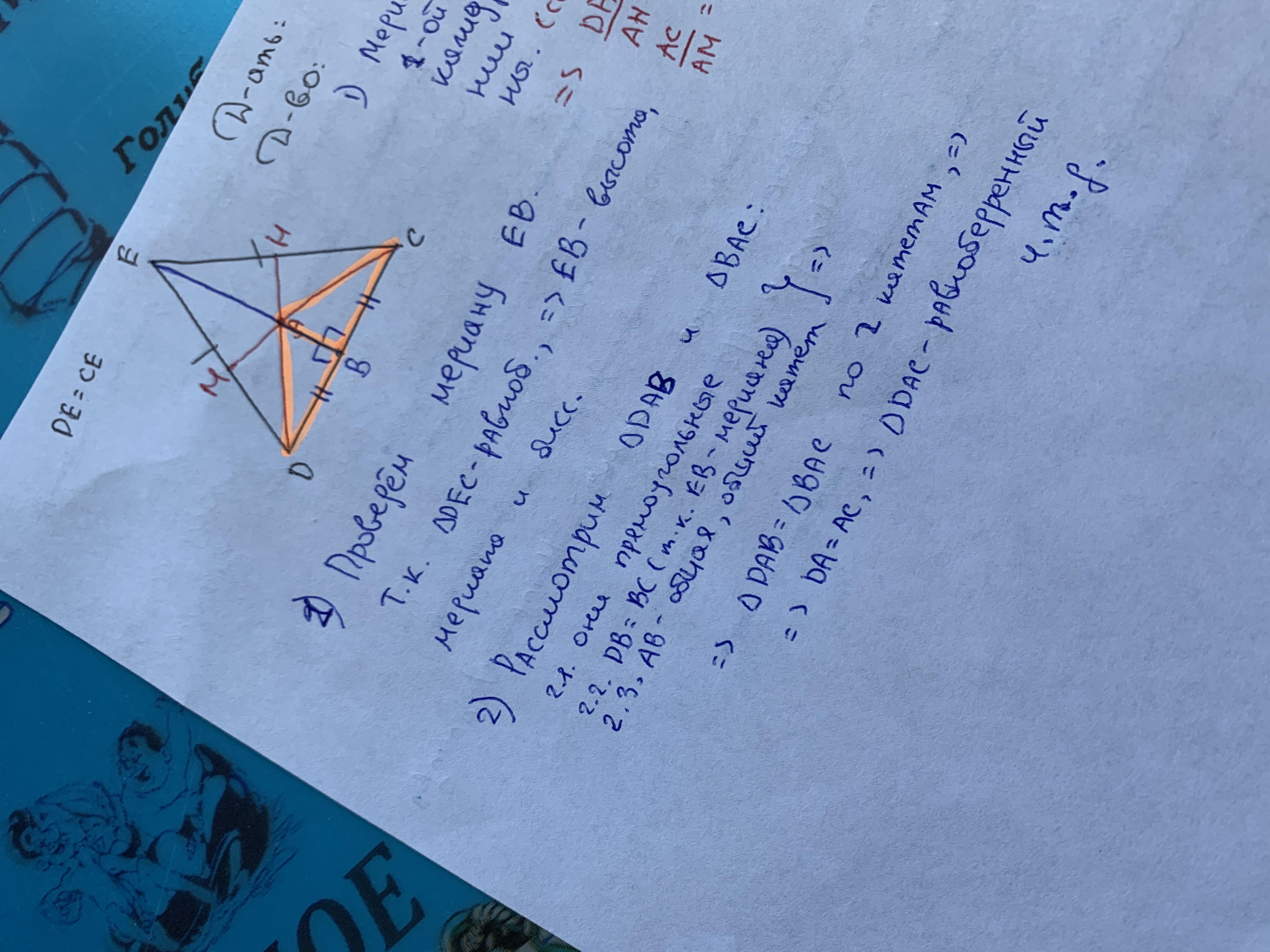В равнобедренном треугольнике DEC с основанием CD медианы CM и DH пересекаются в точке А. Докажите что треугольник DAC также равнобедренный.