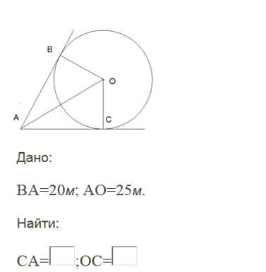 CA=BA=20, так как треугольники BAO и OAC равны по двум сторонам и углу между ними.