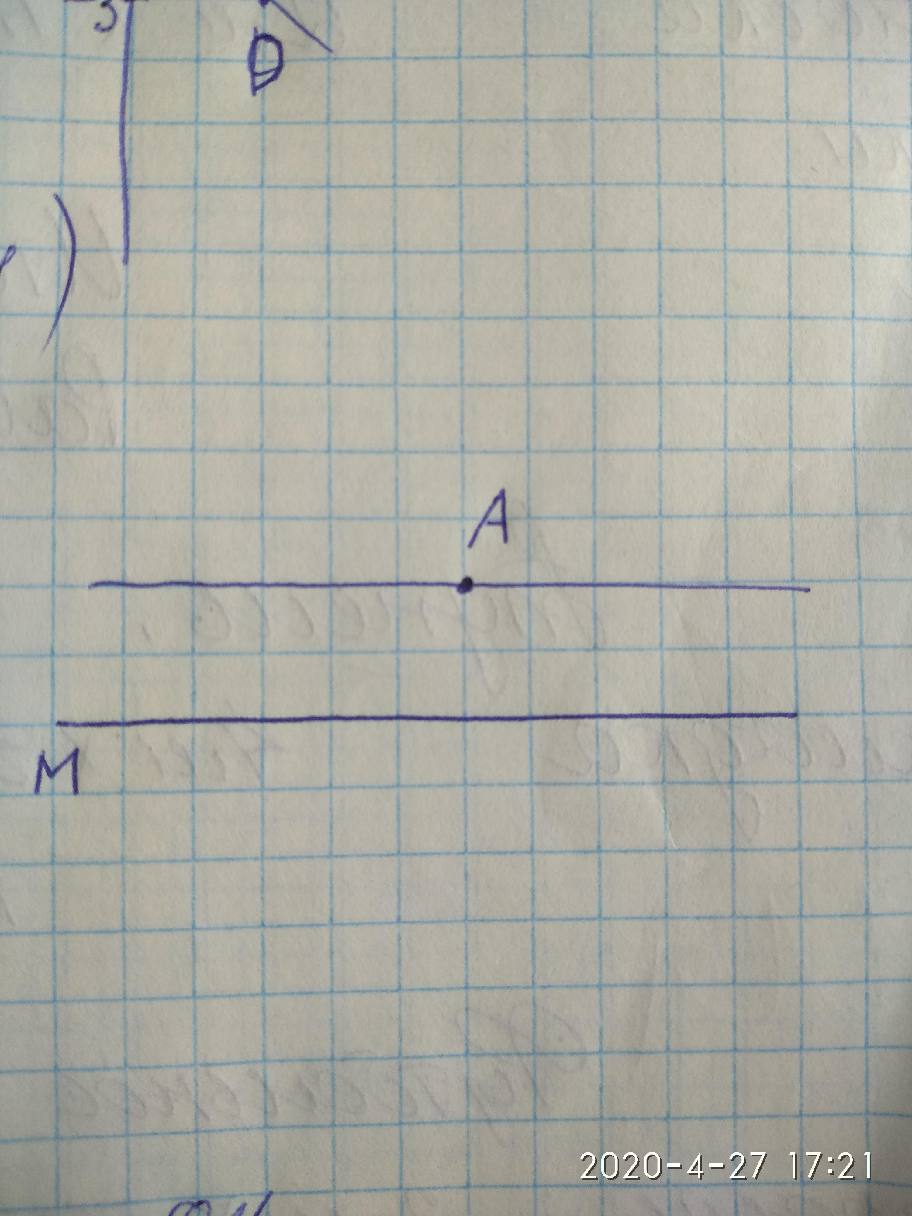 Параллельно провести прямую через точку А надо так ,чтобы она не пересеклась с прямой М никогда.