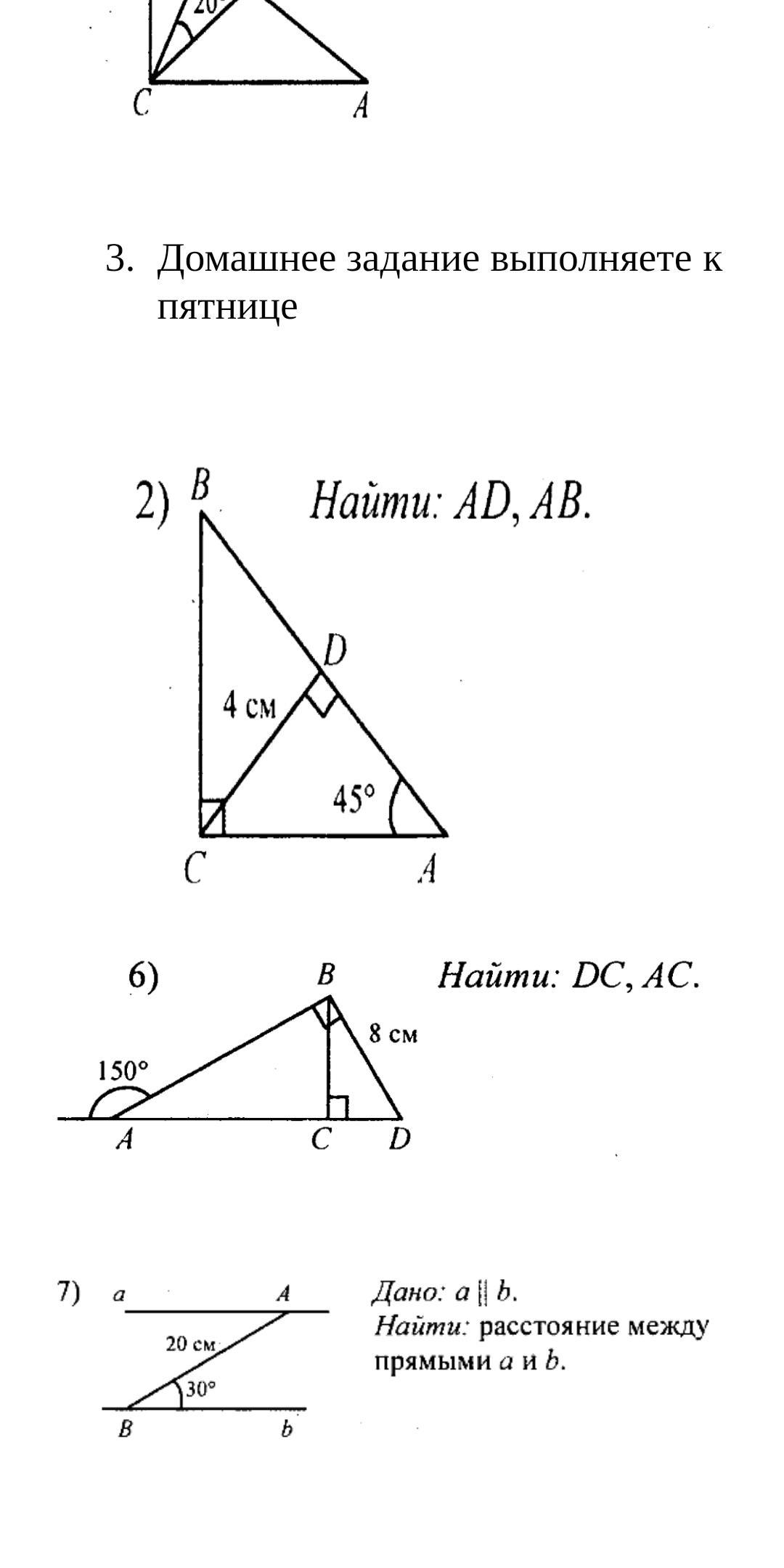 3) угол D = 90°-30°=60° по свойству прямоуг треуг (сумма острых углов в прямоуг треуг = 90°)