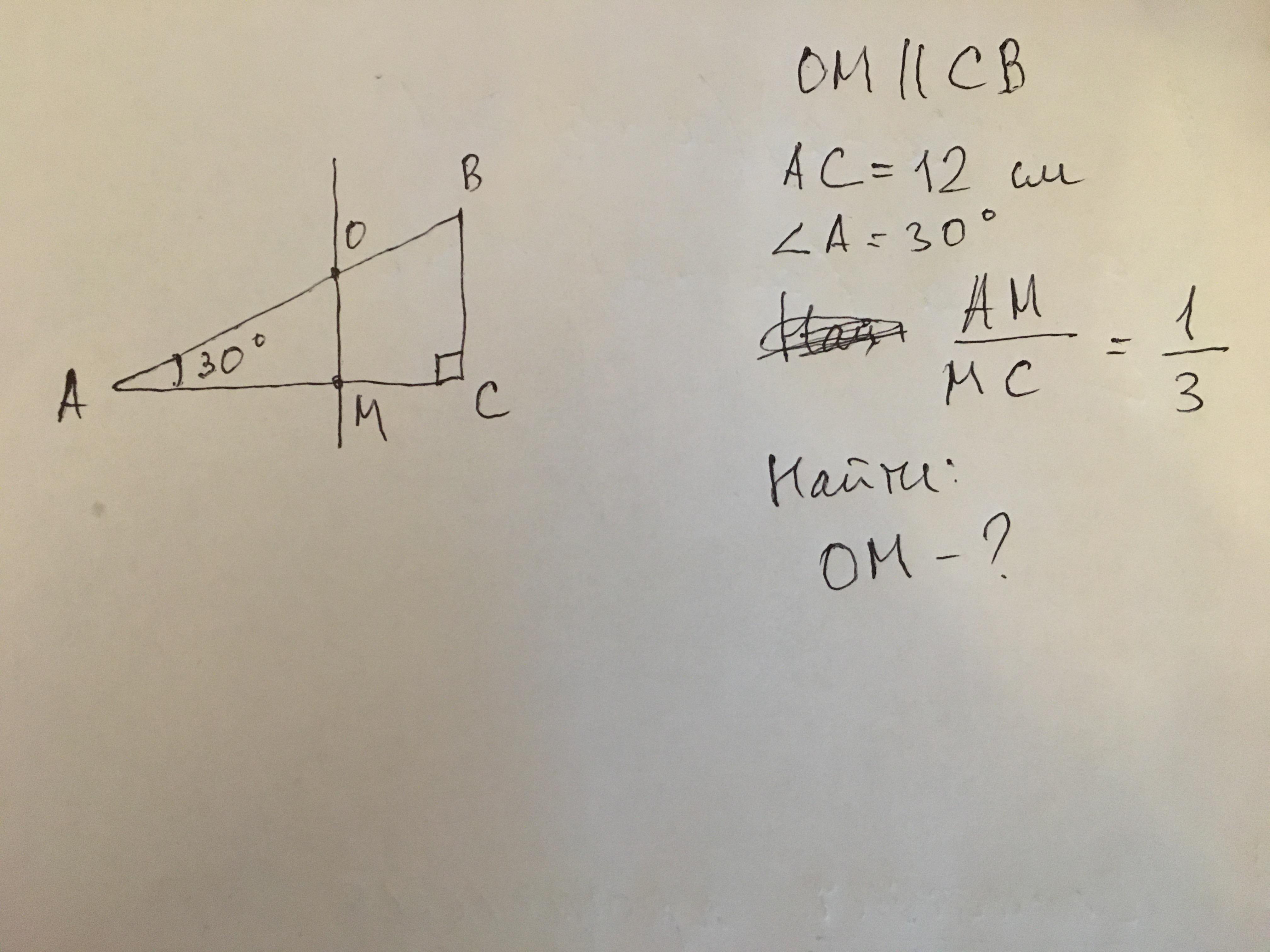Катет противополжный углу 30 градусов равен половине гипотинузе