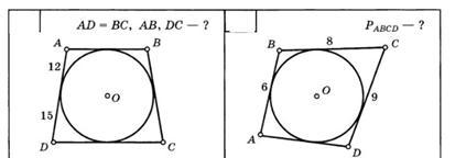 Обозначим точку касания с окружностью на АВ - точкой М, точку касания с окружностью на CD- точкой N, точку касания с окружностью на BC- точкой L. BM=BL, LC=CN, (как касательны к окружности проведенные из одной точки).Пусть MB-x, CN-y. Тогда BC=BL+LC=MB+CN=x+y=8; AD(по аналогии с предыдущим)=(6-x)+(9-y)=15-(x+y)=15-8=7. Pabcd=6+7+8+9=30