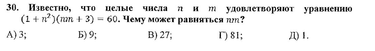 очевидно что что бы слева выражение было целым, то 1+n^2 должно быть так же целым и таким что бы 60 делилось на него на цело.