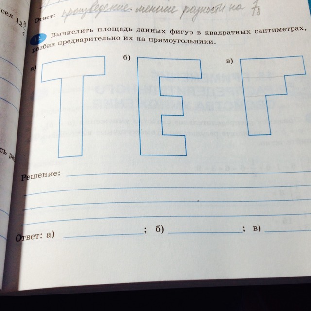 б) разобьём фигуру на 3 прямоугольника и на два квадрата