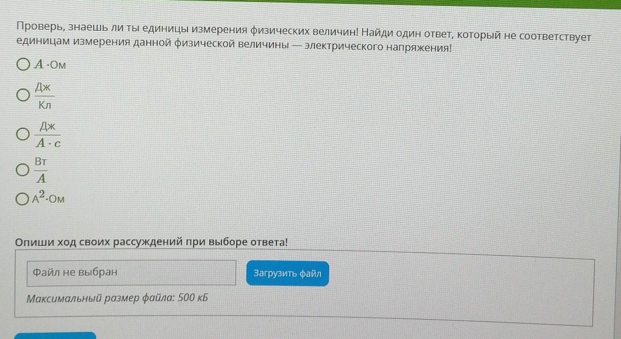 Проверь, знаешь ли ты единицы измерения физических величин! Найди один ответ, который не соответствует
