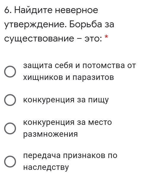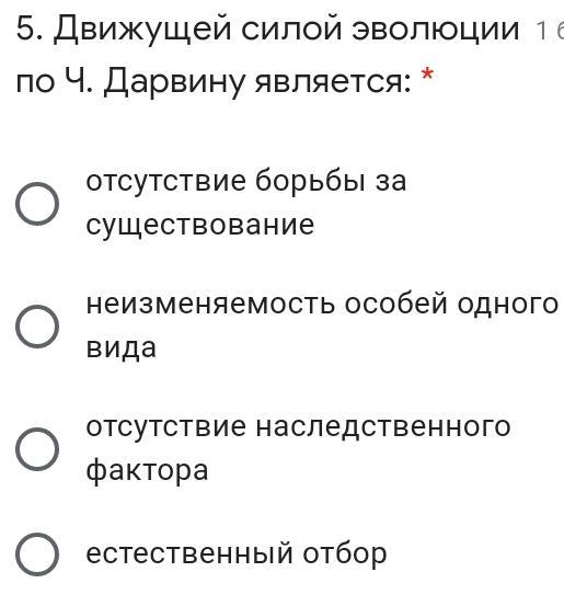 5. Основной движущей силой эволюции по Дарвину является естественный отбор наряду с принципами борьбы за существование, наследственности и изменчивости