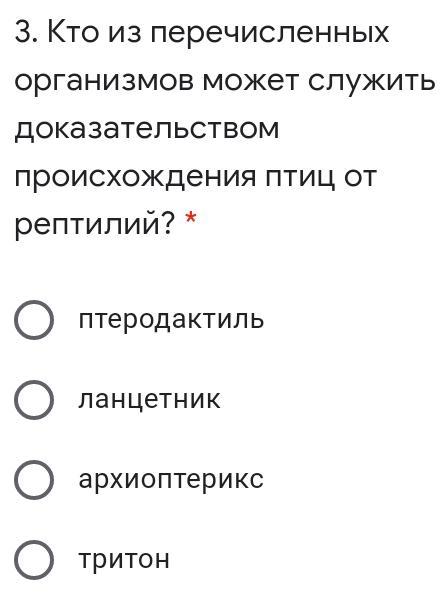 3. Архиоптерикс или птеродактиль (я склоняюсь к архиоптериксу)