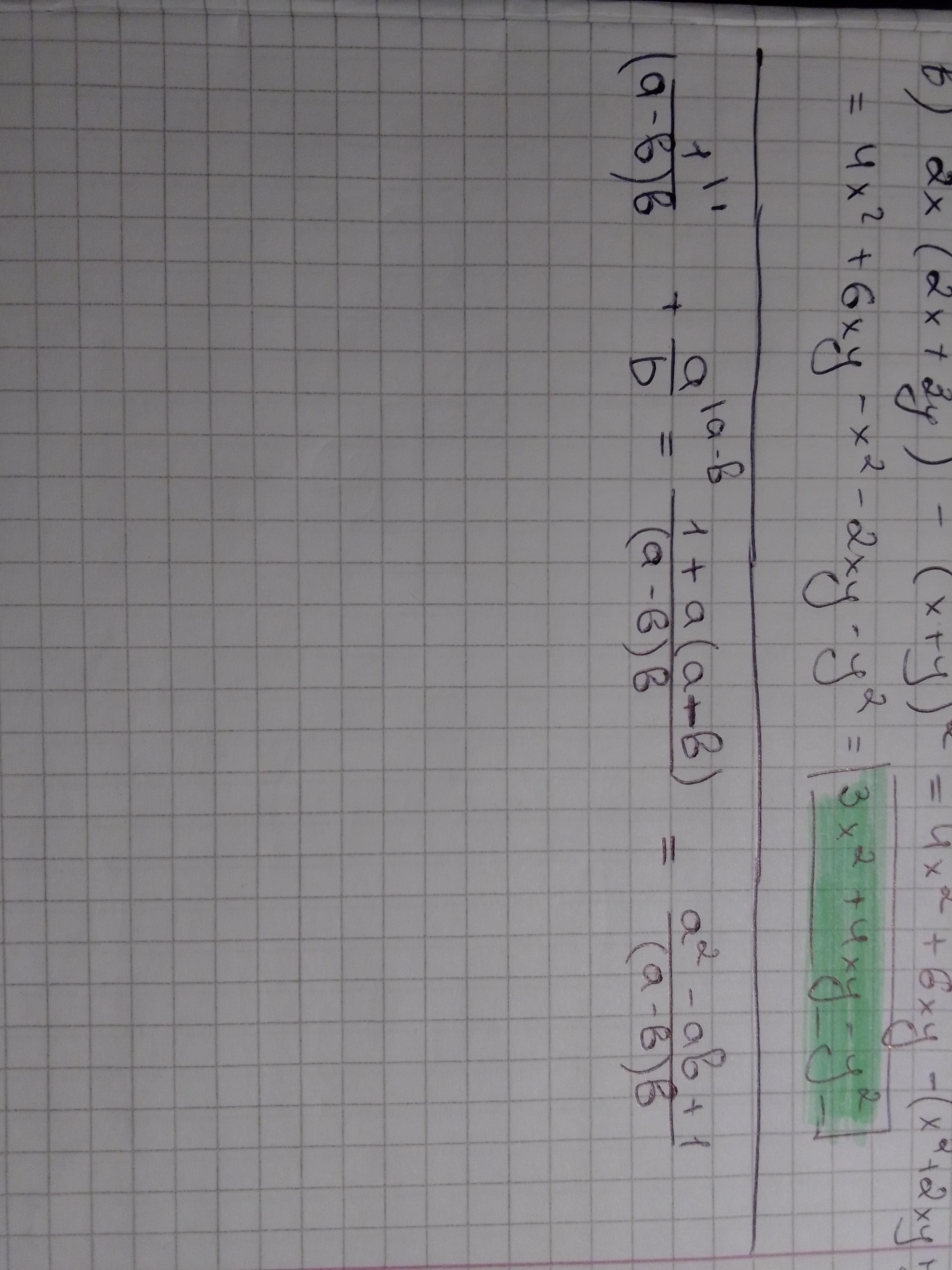 В первой дроби дополнительного множителя не нужно. во второй дроби (a-b). и получаем 1+a(a-b)/(a-b)b = 1+a²-ab/ab-b²