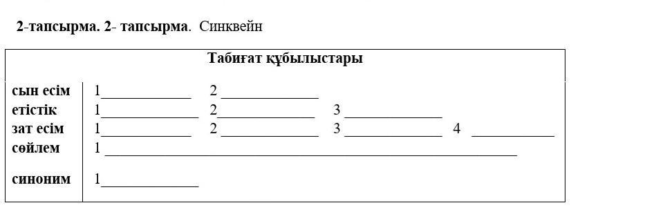 помогите пожалуйста составить синквей по каз яз с теме словами что ниже табиғат құбылыстары (природные явления)