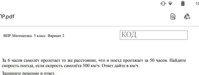Vп = Vc * (tc/tп) = 500 * (6/50) = 60 км/ч