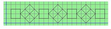 Использую команду сместиться на вектор нарисовать следующие повторяющиеся элементы. Чертите элемент (в данном случае это квадрат с ромбом, в котором есть линии), а затем через цикл n раз повторяете этот элемент