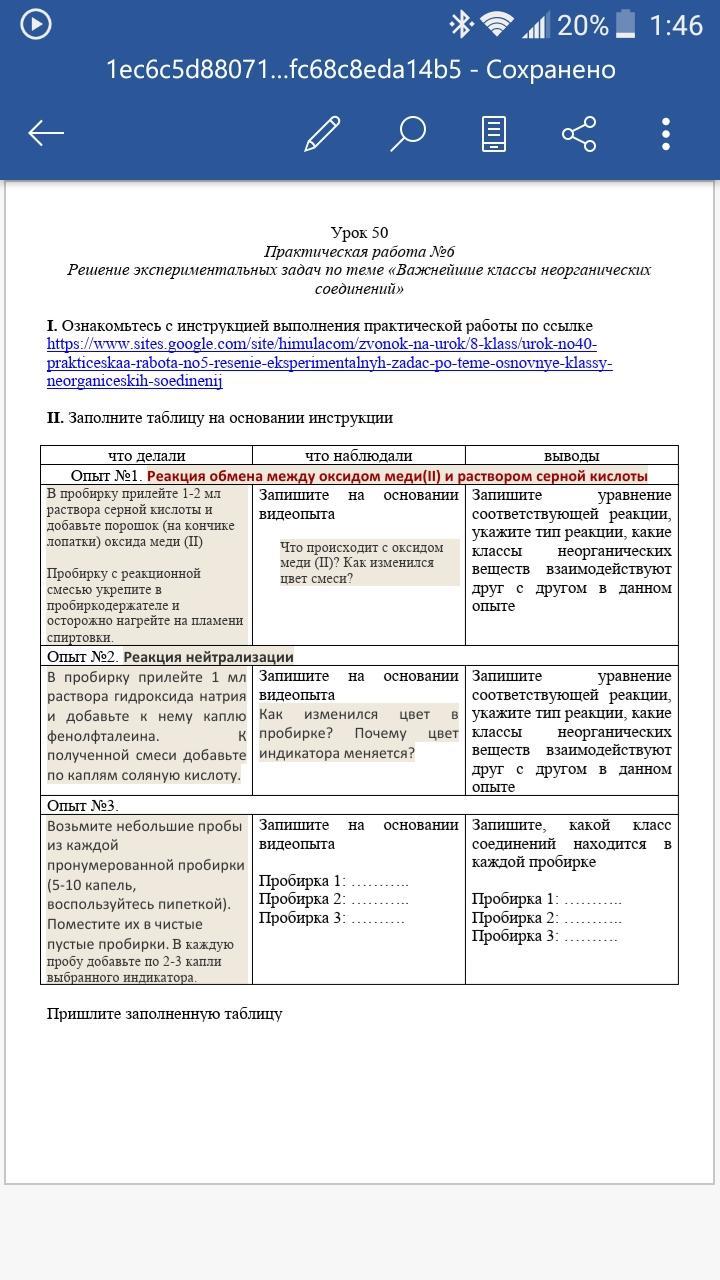 Помогите пожалуйста заполнить таблиц, где что сделали и выводы.