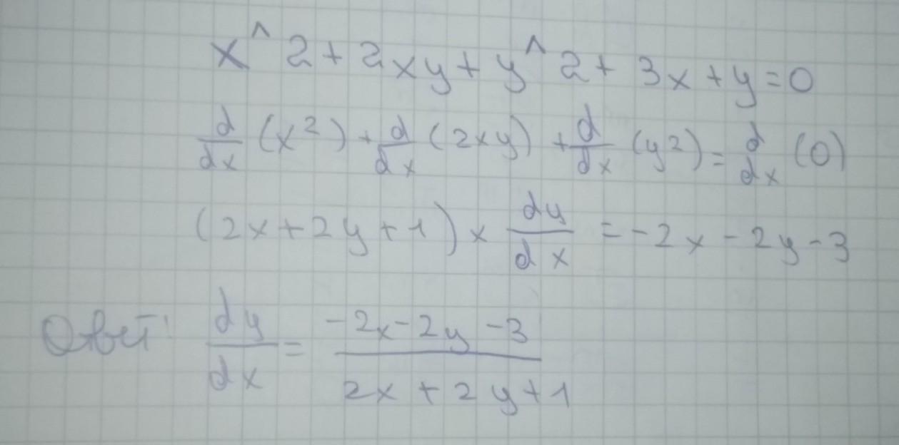 Ответ : dy/dx = -2x-2y-3/2x+2y+1